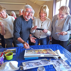 Devant une quarantaine d' aquarellistes de l'atelier, il a réalisé son tableau (cf. photos ci-dessous).